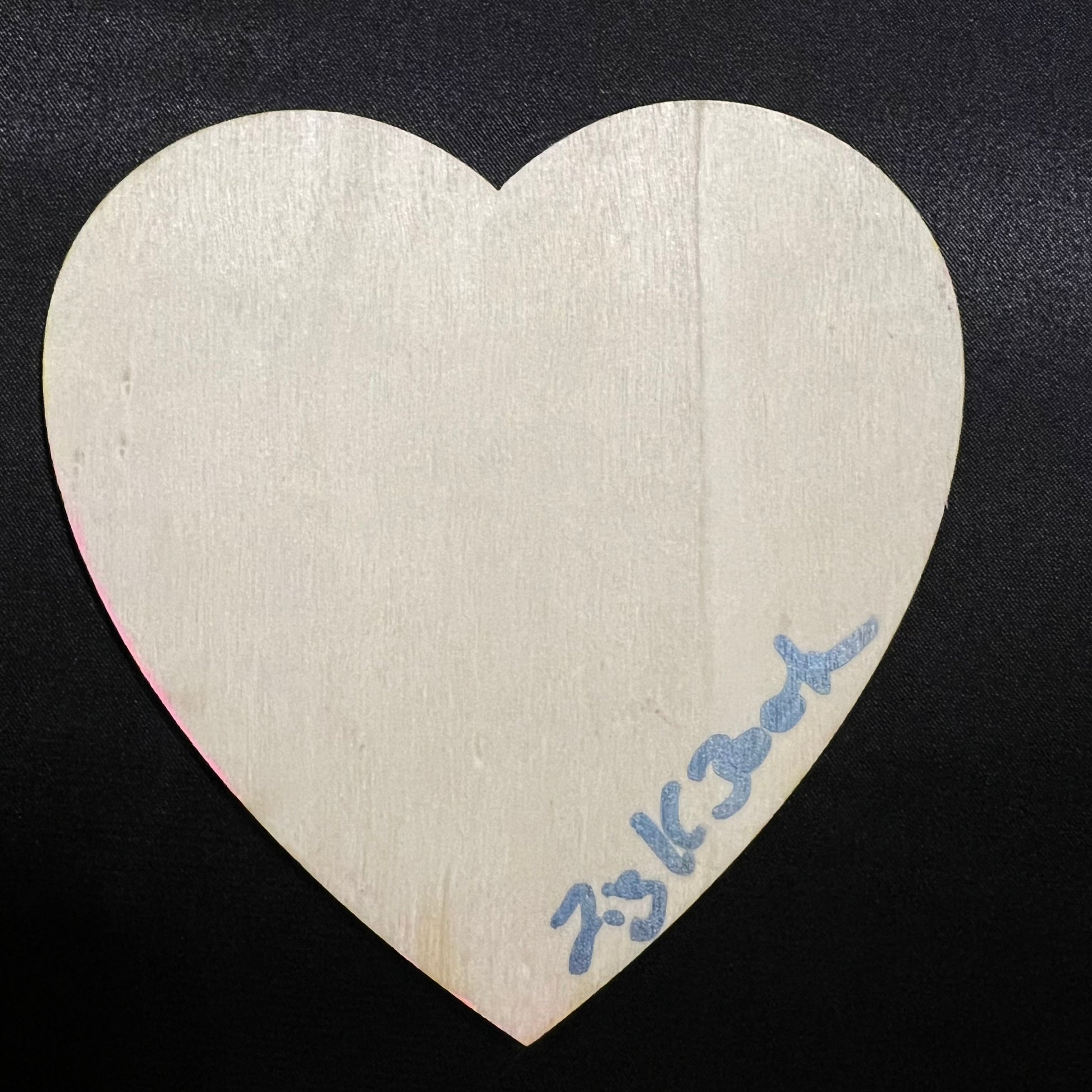 The heart is 4” by 4” on flat wood panel in a heart shape.