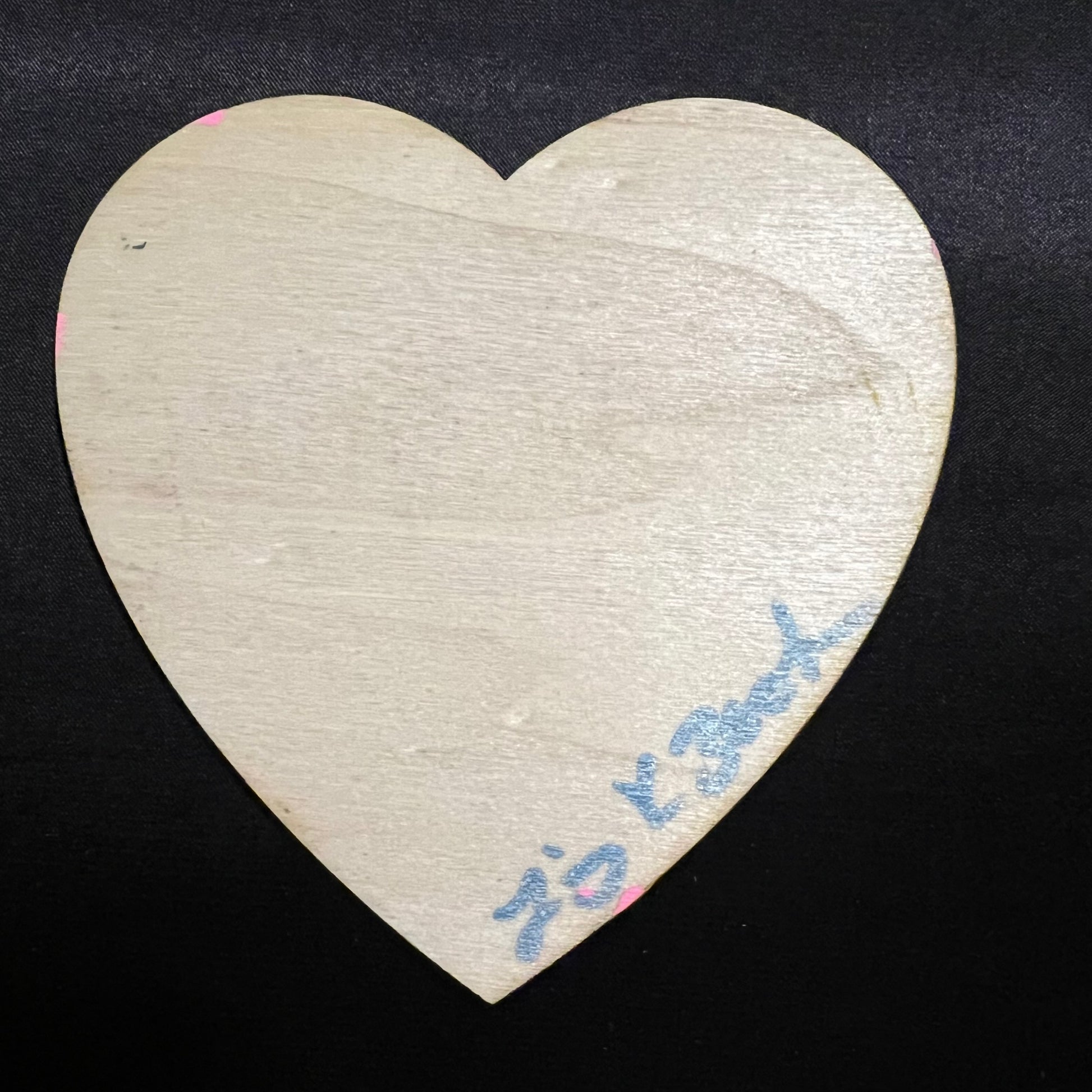 The heart is 4” by 4” on flat wood panel in a heart shape.